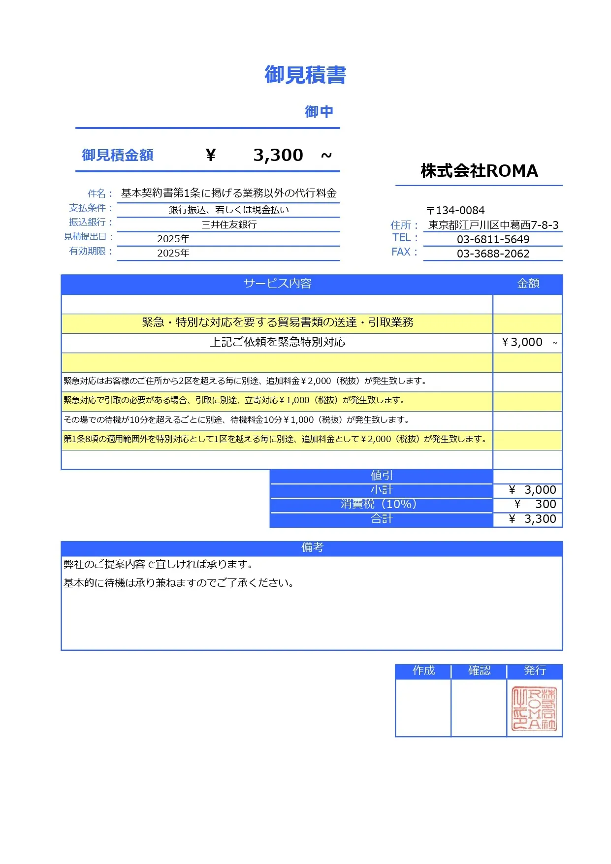 提供するサービスの料金体系は、一般的な運送業とは根本的に異なります。提供しているのは物の移動ではなく、専門知識を持ったスタッフの時間です。これは人材派遣や業務請負に近い、時間貸しのモデルです。料金体系は、お客様が遠方からスタッフを派遣する際にかかる交通費や、移動時間、人件費といったトータルコストと比較して、その優位性を実感できるように設定しています。